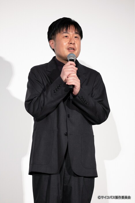 完成した映像について、関は「最上級の面白さ。監督たちが命がけで行ったロケハンの成果が映像にたくさん反映されていて、SFなのにリアリティを強く感じた」と称賛。塩谷監督はロケハン時のエピソードをここだけの話として披露する。また本作には狡噛のアクションシーンがふんだんに盛り込まれているが、塩谷監督からは「プロの格闘家にモーションキャプチャを撮らせてもらい、それをアニメーターさんに絵として起こしてもらいました」という裏話も。映像の尺を2時間以内に収めなくてはいけないところ、制限一杯まで作り込んで結果的に1時間59分59秒23コマとなったことも明かされた。