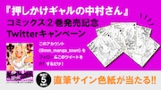 月刊まんがタウン(双葉社)で連載されている「押しかけギャルの中村さん」は、地味なオタク男子の秋山と、同じ大学のギャル・中村の突如始まった同居生活を描くドギマギラブコメ。単行本には19ページの描き下ろしが収録され、電子版には連載時のカラーページも収められた。また5月に発売された「人喰い鬼と男メシ」とのコラボリレーマンガも掲載されている。