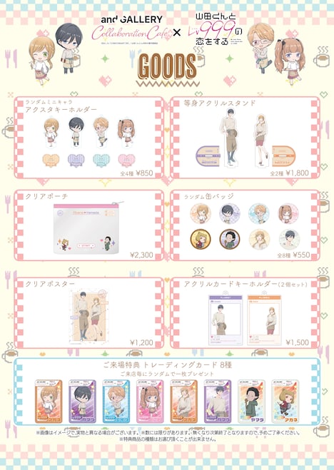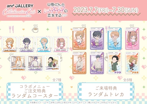 また会場では、描き下ろしイラストを使用したコラボグッズを販売。山田と茜のアクリルスタンド、クリアポスター、2個セットのアクリルカードキーホルダーや、クリアポーチ、缶バッジ、「ランダムアクスタミニキャラキーホルダー」などが取り扱われる。そのほかのコラボグッズの詳細は、and GALLERY池袋店の公式Twitterアカウント(@andGALLERYike)で随時公開していく。なおコラボグッズは後日、and GALLERYの公式オンラインショップでも一部販売される予定だ。