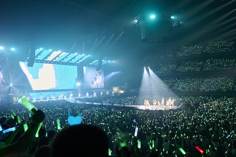 ライブ後半では、会場の中央にあるステージに全出走者が集結。これまで超えてきた、そしてこれから超えていく憧れを口にしていく。天海、のぐち、山根、菊池、須藤、藤原が歌う「ユメヲカケル!」が始まると、会場の一体感は最高潮に。「永遠の色彩」では、高柳、大橋、木村、橋本、津田、優木がやさしく儚い歌声で観る者の心を掴んだ。