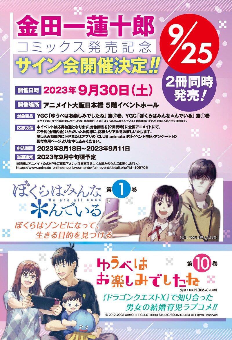 金田一蓮十郎のサイン会開催、「ゆうたの」新刊と「ぼくらはみんな*んでいる」発売記念 https://t.co/nLc4l4bI3H