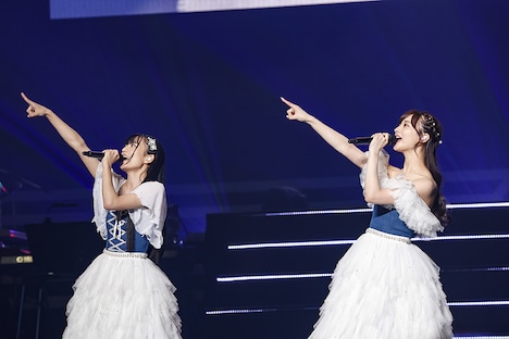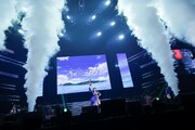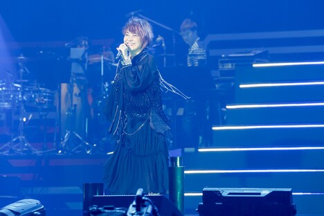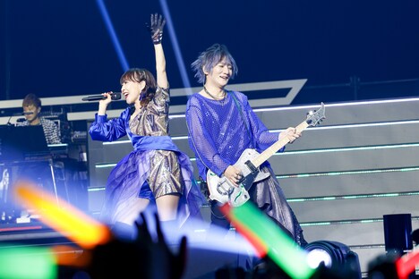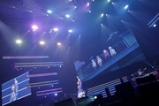 熱いステージの後、バイオリンの音色が一気に観客をMorfonicaの世界観へと誘う。青色のペンライト一色に染まった客席に向かい「ごきげんよう」と挨拶すると、堂々とバンド演奏を開始した。「Daylight -デイライト-」ではサビのメロディがこだまするようにコールが轟く。そのまま“アクセル”全開で次なる楽曲「flame of hope」へ。スカートのフリルを揺らしながら優雅に、力強く歌い上げる。Morfonicaのラストナンバー「誓いのWingbeat」は緊張感のあるバイオリンのイントロから一気に曲が加速。疾走感のあるサウンドで観客を煽り、駆け抜けるように全3曲を演奏しきった。