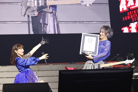 MCとなると笑いの絶えないangelaだが、もちろんふざけてばかりではない。atsukoはデビュー20周年を迎えた今も、自分をここに立たせてくれているアニソンというジャンルへの感謝を真摯に述べると、4年ぶりに発声が許可された「アニサマ」の観客に、「今日は最初から最後まで一緒に歌ってください!」と呼びかける。そして今度こそ「蒼穹のファフナー」から代表曲の「Shangri-La」を、観客とともにシンガロング。「アニサマ」のトリにふさわしいアニメ愛たっぷりのセットリストで感動を届けたangelaだが、最後は「“かわいい”でおなじみのー!」「atsukoー!」と観客に名前を呼ばせ、両者笑顔でステージを締めくくった。