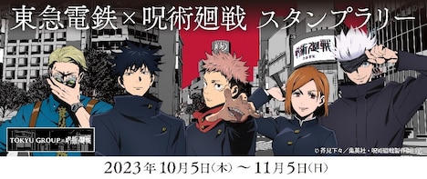 渋谷をはじめとした東急線沿線を中心に街作りを行う東急グループは、ホテルとのコラボ、鉄道スタンプラリー、ポップアップストアなどを開催。虎杖悠仁や五条悟、七海建人らが渋谷の街に立つ描き下ろしビジュアルも公開された。