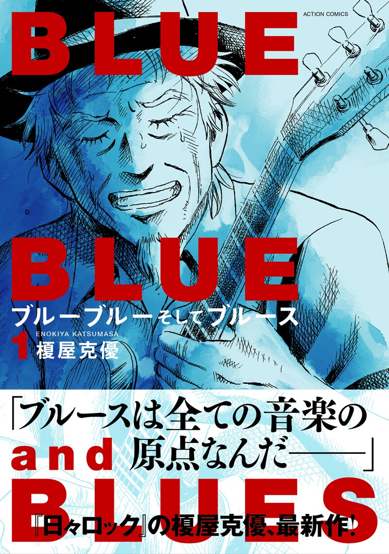 「ブルーブルーそしてブルース」は冴えない会社員・田中と、ベテランのブルース歌手・仲村の物語。ノルマに追われながらも仲村の音楽を支えに働く田中と、長年歌手として生きてきて社会人経験のない仲村は、これまで正反対の人生を送っていた。しかしある夜に田中が見た不思議な夢をきっかけに、2人の身体が入れ替わってしまう。田中は突然人気ブルース歌手としてステージに立たざるを得なくなり、仲村は初めての会社員生活を送り始め……。webアクションで連載されている。