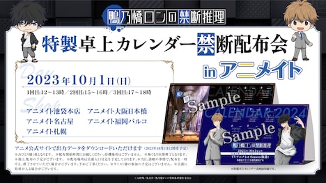 「特製卓上カレンダー禁断配布会」では卓上カレンダーを配布。アニメイト池袋本店、アニメイト大阪日本橋、アニメイト名古屋、アニメイト福岡パルコ、アニメイト札幌にて、12時から13時、15時から16時、17時から18時の3回行われる。またアニメ公式サイトでは、卓上カレンダーの出力データが10月1日12時よりダウンロード可能となる予定だ。