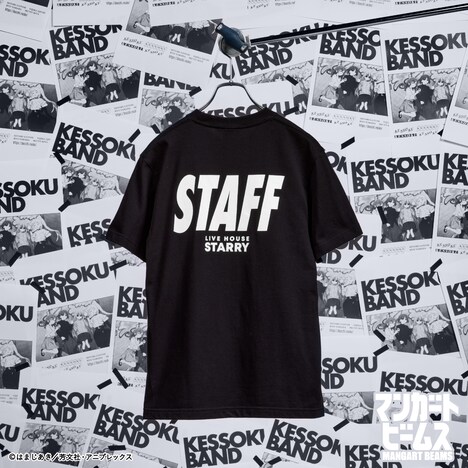 Tシャツのデザインは全3種。結束バンドのアーティスト写真をあしらったTシャツはキャラクターカラーをイメージしたピンク、イエロー、ブルー、レッドの4色が用意された。ぼっちちゃんこと後藤ひとりをモチーフとしたTシャツには、崩壊顔やマンゴーのダンボールをデザイン。“ライブハウス・STARRYがもしもスタッフTシャツを作ったら”というテーマでグラフィックが制作されたTシャツには、胸元にバックステージパスやピック、ステッカーのようなデザインがプリントされている。また、同様のデザインのコーチジャケットも用意された。