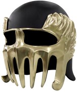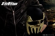 ヘルメットは広島県の精密金属部品メーカー・キャステムが、「誰がどの角度から見ても、原哲夫先生が描くジャギ」というコンセプトで製作。造形は原作を完全再現するため特別なデフォルメは行わず、デジタル原型師が設定をもとに忠実に3Dデータ化した。同社が培ってきた“精密鋳造技術(ロストワックス製法)”を用いて、本体は鋼の一種であるステンレス鋼、口を覆う格子状の部分は真鍮で作られている。