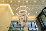 全3フロアの内、入り口と直結する1階は、イベントやワークショップの会場、また憩いの場として活用。その入口近くの頭上には、来訪者を迎える巨大ならせん状のオブジェが設置されている。このオブジェを構成するのは、日本が長い歴史をかけて生み出してきたアニメのビジュアルの数々。1958年に東映動画(現東映アニメーション)が製作した日本初のカラー長編アニメ映画「白蛇伝」から始まり、日本初の長編テレビ用連続アニメである「鉄腕アトム」、劇場アニメからは新海誠「君の名は。」、細田守「バケモノの子」、近年の作品では「リコリス・リコイル」、今年新シリーズが始まった「ポケットモンスター」、そして第5シリーズが来年1月にスタートする「キングダム」まで年代順に約120点のビジュアルが並べられた。なお旧作・新作問わず、今後も新たなビジュアルが追加される予定だ。