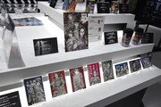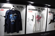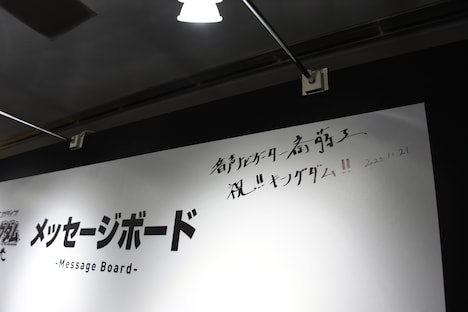そのほかAR技術を用いたフォトブースや、1億部突破までの軌跡を単行本の書影とともにたどるコーナーも。物販にはオリジナルグッズのTシャツやトートバッグ、ポストカードセットが並んだ。また出口付近のメッセージボードには、同展の音声ナビゲーターを務めた