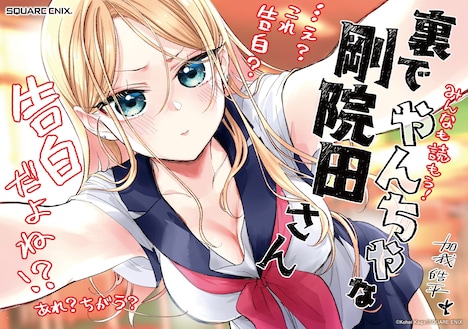 ヤングガンガン(スクウェア・エニックス)で連載中の「裏でやんちゃな剛院田さん」は、学校一の完璧美人・剛院田告(ごういんだこくる)と、地味な男子・平野のラブコメ。ある日の放課後、忘れ物を取りに教室に戻った平野は、自分の机の前で剛院田がもじもじと何かをしている姿を発見する。もしや彼女は自分のことが好きなのではと思った平野だったが、剛院田の目的は予想の斜め上を行き……。剛院田の規格外ないたずらの数々に、平野がドキドキしながらも振り回されるさまが描かれる。