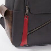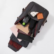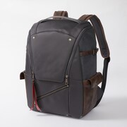 バックパックもゴブリンスレイヤーの全身装備から着想したデザインに。サイドは鎖帷子のようなメッシュ生地に、アースカラーのベルトが施されている。腰から下げた装備を彷彿とさせるフラップポケットも付けられた。