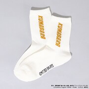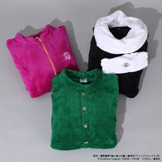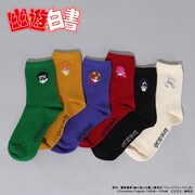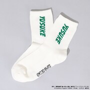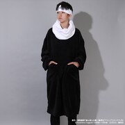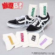 大人向けのアイテムも登場した。幽助、蔵馬、飛影をイメージした着る毛布は、ふわふわなシャギーボア素材のルームウエア。ポケット付きで実用性にも優れている。飛影モデルは着る毛布、スヌード、邪眼刺しゅう入りヘアバンドの3点セットで、それぞれ単品使いもできる。ソックスは、キャラクターのワンポイント刺繍がほどこされたデザインと、名前が織り込まれたデザインが用意された。