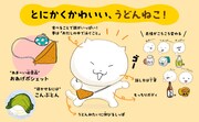うどん屋の店主・ボタンくんがうどんの生地をこねていると、「う・どーん!」と突然ねこが生まれた。ボタンくんに“うどんねこ”と名付けられたその生き物は、食いしんぼうで自由気まま。だけどそんなうどんねこが、閉店危機にあったうどん屋の救世主に……。物語の中には探し絵やまちがい探しの要素もあり、大人も子供も一緒に楽しめる1冊に仕上げられた。
