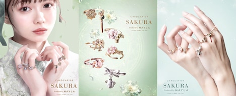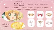 「MAYLA CARDCAPTOR SAKURA ICONIQUE STORY RING OBJET」は、「カードキャプターさくら」のストーリーをモチーフにしたリング。「木之本桜の物語」「木之本桜と小狼の物語」「木之本桜と月の物語」の3モデルが用意され、6種類のリングがセットになった。複数のカラーを重ね付けすることで、自分だけのストーリーを楽しむことができる。