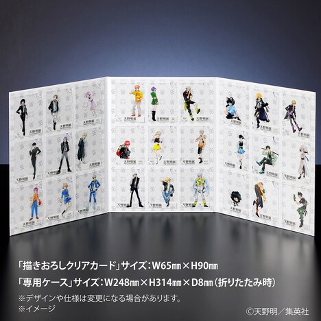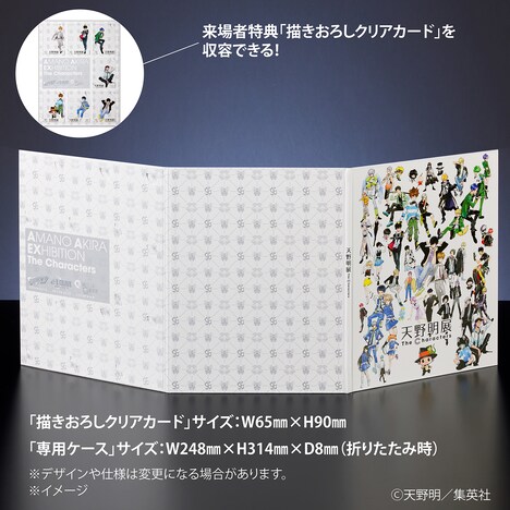 チケットには、通常の入場チケット、グッズ付き入場チケットのほか、展覧会初日の5月18日と翌19日を対象とした「日時指定入場チケット」「グッズ付き日時指定入場チケット」を用意。グッズ付きチケットを購入すると、特典として「描きおろしクリアカード」全27種と同カードが収納可能な「専用ケース」が付いてくる。なおグッズ付き入場チケットは、無くなり次第終了となるためご注意を。