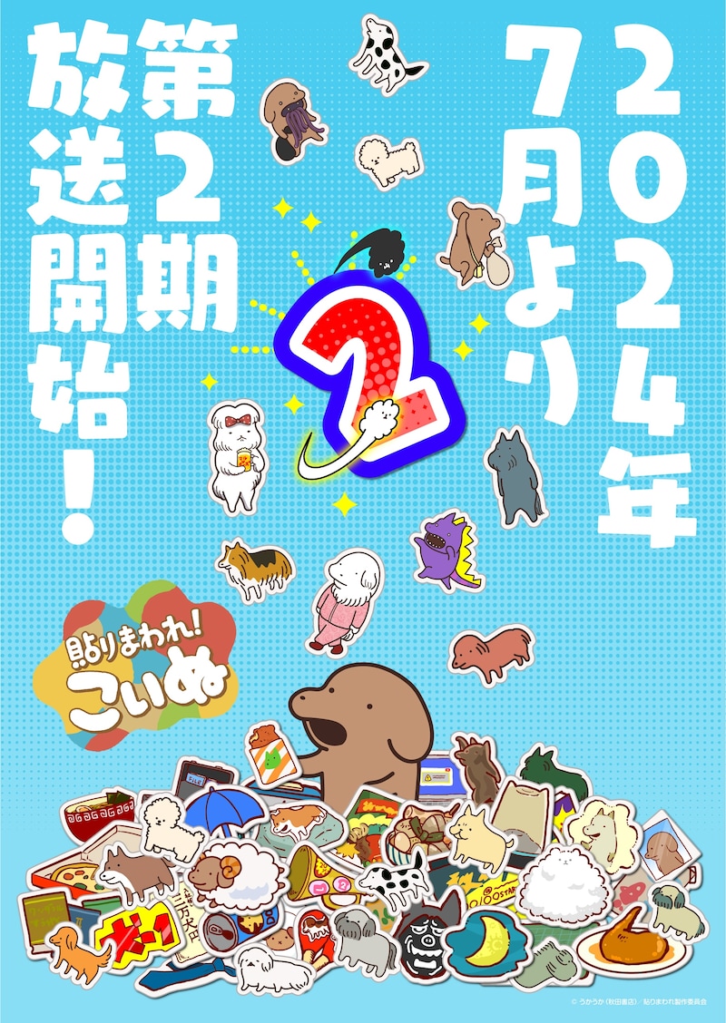「貼りまわれ!こいぬ」は“ステッカーを貼りまわる”という仕事に励むことになったこいぬを軸に、犬たちの日常を描くショートアニメ。第1期は1月より放送され、本日3月23日に最終回を迎えた。第2期のティザービジュアルでは、新キャラクターの姿も確認できる。
