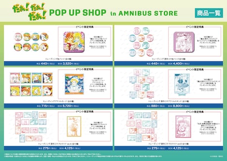 またイベント会場で「トレーディング缶バッジ」「トレーディング 原作コマ缶バッジ」「トレーディングアクリルカード」「トレーディング 原作コマアクリルスタンド」「トレーディング 原作コマカードステッカー」「トレーディング 原作コマブロマイド ver.A」「トレーディング 原作コマブロマイド ver.B」をBOX購入した人には先着で特典グッズを進呈。なおAMNIBUSとアニメイトでは別絵柄の特典グッズの付属を予定している。