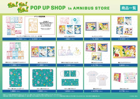 会場では原作イラストを使用したグッズを先行販売。缶バッジ、アクリルカード、アクリルスタンドなどのトレーディング商品のほか、ビッグサイズのアクリルスタンド、アクリルキーホルダー、Tシャツ、マグカップなどが用意された。商品はイベント開始日に通販サイト・AMNIBUSで受注販売がスタート。またイベント終了日の翌日からアニメイトでも予約の受け付けを予定している。さらに期間中、イベント関連商品を税込2000円購入するごとに、ポストカードをランダムで1枚プレゼント。絵柄は全6種ラインナップされている。
