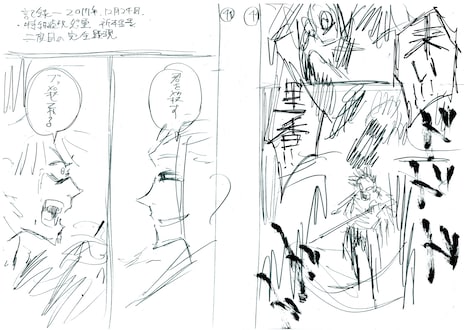 7月6日から8月27日まで東京・渋谷ヒカリエのHikarie Hallで開催される「芥見下々『呪術廻戦』展」。「領域之壱:プロトタイプ&ネーム」ではネームや下書きが惜しみなく展示され、「呪術廻戦」へとつながる前日譚「東京都立呪術高等専門学校」のネームも一部見ることができる。