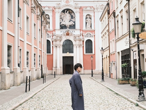 「映画 ギヴン 海へ」はアニメ「ギヴン」続編映画2部作の後編。ポスタービジュアルは、少し視線を落とした真冬と、振り返り真冬に視線を向ける立夏、春樹、秋彦の姿が描かれた。彼らが立つのは渋谷の街中。背後のビルには、メジャーデビューし活躍するバンド・syhの柊と玄純、プロのヴァイオリニストである雨月の広告が大きく飾られている。
