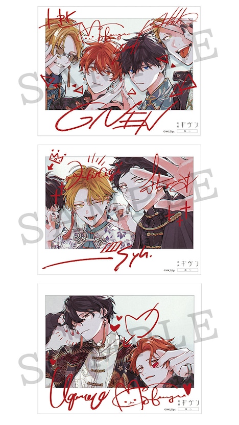 特典付きムビチケカードが7月27日に発売されることも発表に。特典には、全3種の「キヅナツキ描き下ろしポラロイド風カード」が用意された。さらにTVアニメと映画3作の劇伴を収録した「ギヴン Original Soundtrack」が、映画の公開日と同日の9月20日に発売されることも決定した。