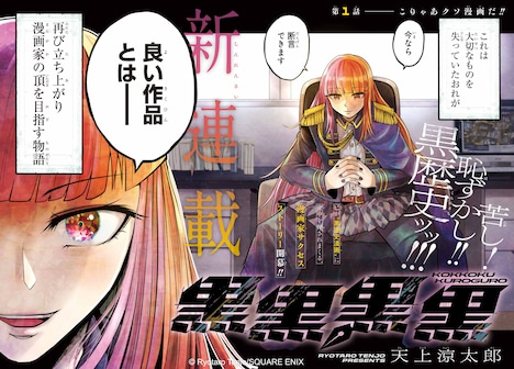 「黒黒黒黒」の主人公はうだつの上がらないマンガ家・日阿野。ある日、ひょんなことから中学時代に描いた黒歴史マンガ「スター☆ブラック☆シャイニング」を読み返していると、その物語の世界に吸い込まれてしまう。アホな設定や中二病全開のセリフが満載の「スタブラ」から、かつての情熱を感じ取った日阿野。しかしあまりにも“クソ漫画”であることが気になった彼は、読者を満足させるために作品の中にいながらテコ入れをし始める。