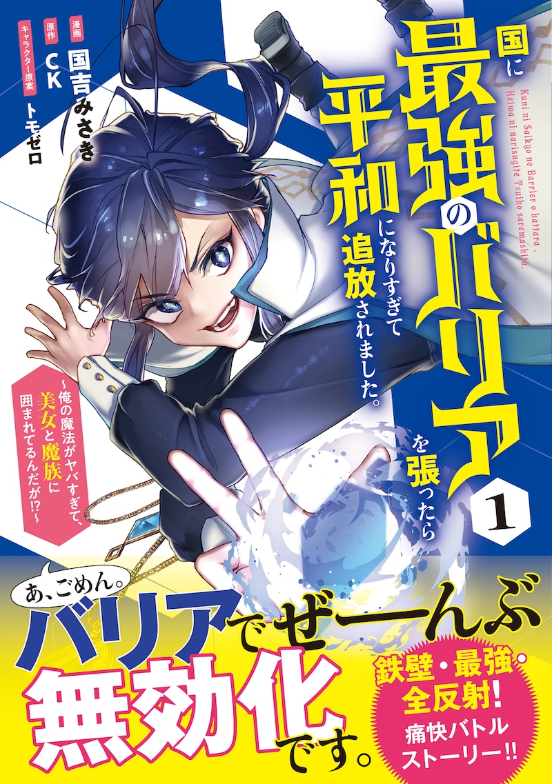 「国に最強のバリアを張ったら平和になりすぎて追放されました。~俺の魔法がヤバすぎて、美女と魔族に囲まれてるんだが!?~」は、CKの小説を原作としたコミカライズ作品。強固なバリアに覆われた大国ヘレナは、魔物から守られ繁栄の一途をたどっていた。しかしバリアを張ったシールド・レイアレスは、バリア魔法しか使えないため周囲からは見下され、バリアさえあれば用なしとばかりに国を追放されてしまう。バリアの効果が永久に続くわけではないことを知るシールドは国のことを心配しながらも、安住の地を求めて旅に出る。守りしかできないけれど、その守りが最強すぎる青年・シールドが織り成す新感覚バトルアクションを描く。