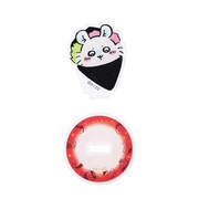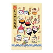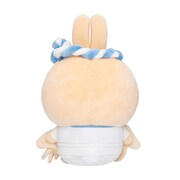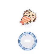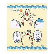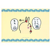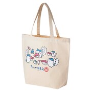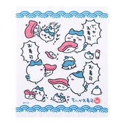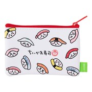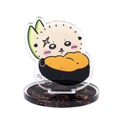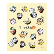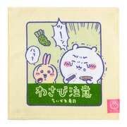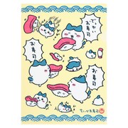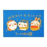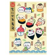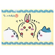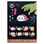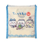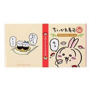 「むちゃうま!!ちいかわ寿司」には、寿司ネタを乗せられ切ない表情を見せるちいかわ、でっかいお寿司をひっくり返すハチワレ、海苔に巻かれたモモンガなど新規描き下ろしイラストを使用した記念商品が登場。ぬいぐるみやステッカー、アクリルスタンド、バッグといったキャラクターグッズや、寿司を頬張るうさぎのラベルが貼られたさしみ醤油、「お寿司屋さんみたいなお皿」など催事のテーマに絡めたアイテムもラインナップされている。
