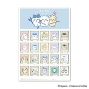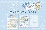 「『ちいかわ』オリジナルフレーム切手セット」は85円切手20枚が1枚のシートになったアイテム。切手にはちいかわ、ハチワレ、うさぎをはじめ、モモンガ、くりまんじゅう、シーサー、古本屋らがデザインされた。またカブトムシ、あのこ、パジャマ姿のちいかわたちといった絵柄も用意されており、20枚すべてが異なるデザインになっている。さらに、ちいかわたちがデザインされたフレーム切手台紙も付属する。