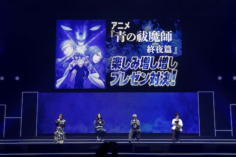 ステージではキャスト陣が、12月21日深夜に最終回が放送されたばかりの「青の祓魔師 雪ノ果篇」を、それぞれの思い出深いシーンとともに振り返る。燐の告白シーン、奥村兄弟の旅館での一幕などが選ばれ、4人は映像を観ながら和気あいあいとトークを繰り広げた。