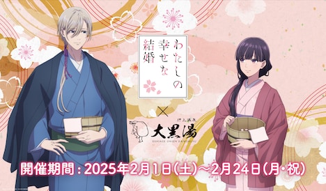 そのほか、「わたしの幸せな結婚」と東京・大黒湯がコラボ。美世と清霞の“湯上り”イラストが公開された。コラボは2月1日から24日まで、大黒湯で展開。店内装飾やフォトスポットの設置、“スペシャルコラボ湯”などが展開される。