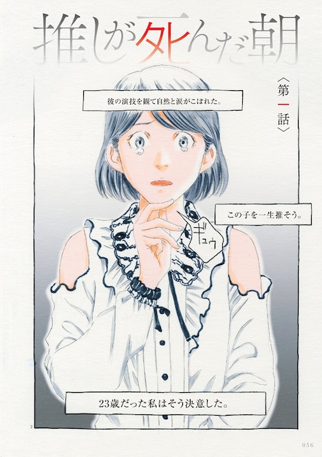 同書には古屋が“推し活”をテーマに描いた「推しが死んだ朝」「日々、推す」の2作品を収録。表題作の「推しが死んだ朝」は、アイドル的な人気を博す2.5次元俳優の金森雅哉を「一生推す」と決めた23歳の吉村優子が主人公だ。50年の時が経ち、老人ホームで暮らす優子は、ある日突然消えた雅哉を今でも胸の中で推し続けているが……。