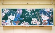 今年1月に完結し、3月18日に単行本の最終37巻が発売された「古見さんは、コミュ症です。」。巨大広告には黒板アート作家のすずきらなが描いた、桜に囲まれた古見さん、只野、なじみのチョークアートと、読者から寄せられたコメントの一部がデザインされた。また広告に記載されているQRコードを読み込むと、