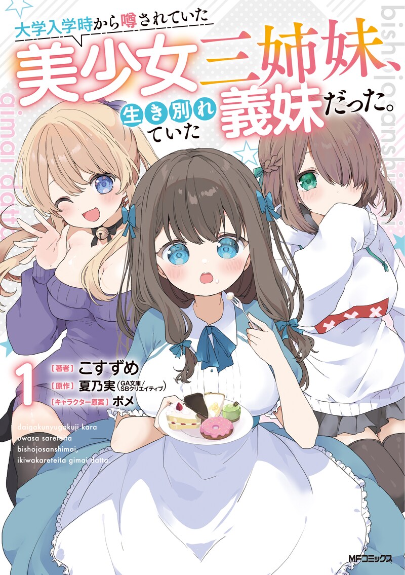 夏乃実原作によるこすずめ「大学入学時から噂されていた美少女三姉妹、生き別れていた義妹だった。」1巻が本日4月28日に発売された。