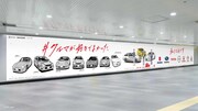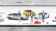 これは「頭文字D」の30周年を記念したもの。全長約22mの広告には作中に登場する車7種が登場し、スズキのカプチーノ、スバルのインプレッサ、トヨタのSW20 MR2、日産のBNR34 GT-R、ホンダのNSX、マツダのB6 ユーノス・ロードスター、三菱自動車のCN9A ランサーエボリューションIVが描かれている。中央にはしげの描き下ろしによるプロジェクトDのイラストが登場。右側には各企業のロゴと「#クルマが好きでよかった」「私たちもです」という“クルマ愛”を宣言するメッセージがデザインされた。
