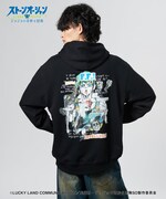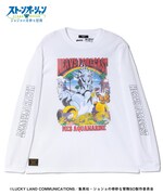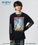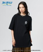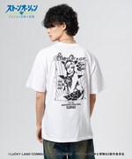 アニメ「ジョジョの奇妙な冒険 ストーンオーシャン」とglambのコラボは、2022年以来3度目となる。今回は空条徐倫のTシャツや空条承太郎のジャケットをはじめ、フーディ、ハワイアンシャツ、ブルゾン、カーディガンなどの全9型をラインナップ。アイテムのモチーフは徐倫と承太郎を含め、エルメェス・コステロ、エンポリオ・アルニーニョ、プッチ神父の能力“メイド・イン・ヘブン”など。徐倫のTシャツには、徐倫がG.D.St刑務所に収監された日付や、作品を象徴する蝶のモチーフをプリント。随所に作品の要素があしらわれている。このほかのアイテムのデザインにも、各キャラクターの特徴やセリフを落とし込んだ。