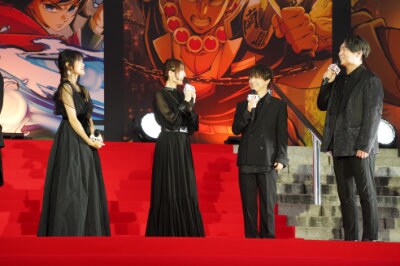 花江は豪華な会場を見渡しながら、「まさか増上寺でこういったイベントができるとは! ここから見る景色が荘厳すぎて、鬼がこの場にいたら成仏できるんじゃないかと思います(笑)」と笑いを誘う。公開を1週間後に控えた今の心境を聞かれると、「ドキドキします。皆さんの期待を超えてくる映画になってるんじゃないかなと思うので、早く観ていただきたい」と胸を弾ませる。鬼頭は「アニメが始まった当初はこんなにたくさんの方に届いて、これほど大きな規模で盛り上がっていただけるとは思っていませんでした。一度ドーンと大きく知ってもらい、皆さんに愛してもらってから、それがずっと続いてきているというのが本当にうれしいです」と感慨深げに微笑んだ。