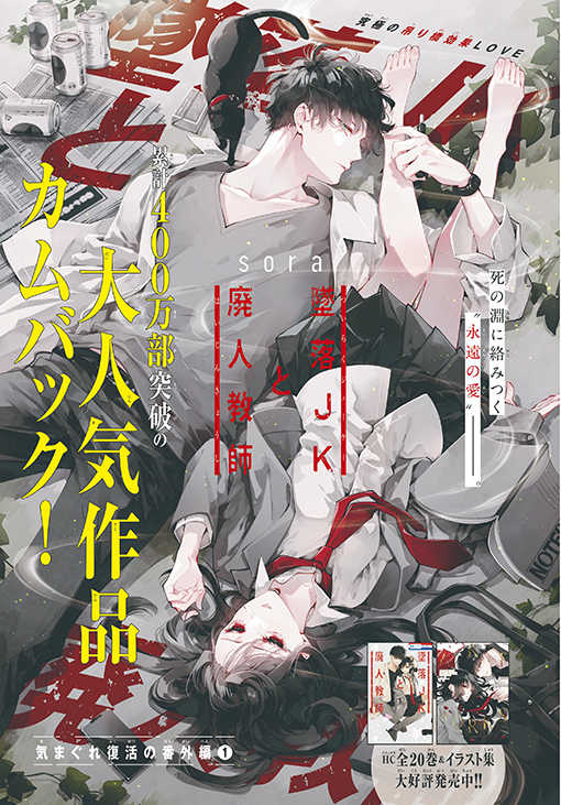 2024年6月に完結した「墜落JKと廃人教師」は、ヘビースモーカーで不真面目な高校教師・灰仁と孤独な女子高生・扇言を描くラブストーリー。2023年には橋本涼と髙石あかり出演でTVドラマ化もされた。約1年ぶりのカムバックとなる番外編は、カラー付き15ページで収録されている。なお次回は9月5日発売の花とゆめ19号に登場。巻頭カラー付き34ページで掲載される予定だ。