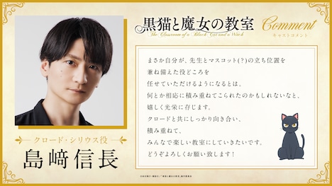 まさか自分が、先生とマスコット(?)の立ち位置を兼ね備えた役どころを任せていただけるようになるとは。何とか相応に積み重ねてこられたのかもしれないなと、嬉しく光栄に存じます。クロードと共にしっかり向き合い、積み重ねて、みんなで楽しい教室にしていきたいです。どうぞよろしくお願い致します!