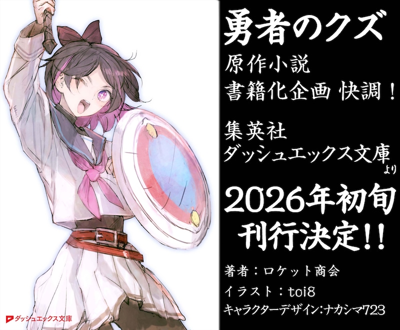 またロケット商会による原作小説が新装版で刊行されることも決定。ナカシマ723によるキャラクターデザインをもとに、新たにイラストレーターとしてtoi8が参加する。新装版は集英社ダッシュエックス文庫より2026年初旬に刊行予定。情報公開に合わせて、最新の描き下ろしイラストが披露された。