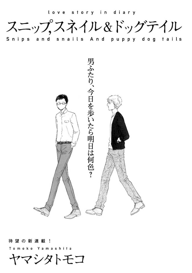 「スニップ,スネイル&ドッグテイル」は、日記形式でとあるカップルを描くBL。第1話では時系列を入れ替えて2人の日々が描かれている。