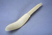 ストリジルとは、作中に登場する古代ローマの金属製アカスリ。今回付属するプラスチック製のストラップは、実寸大の約30cmで再現された、特大サイズの逸品だ。