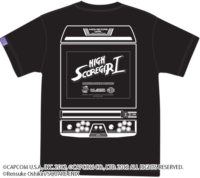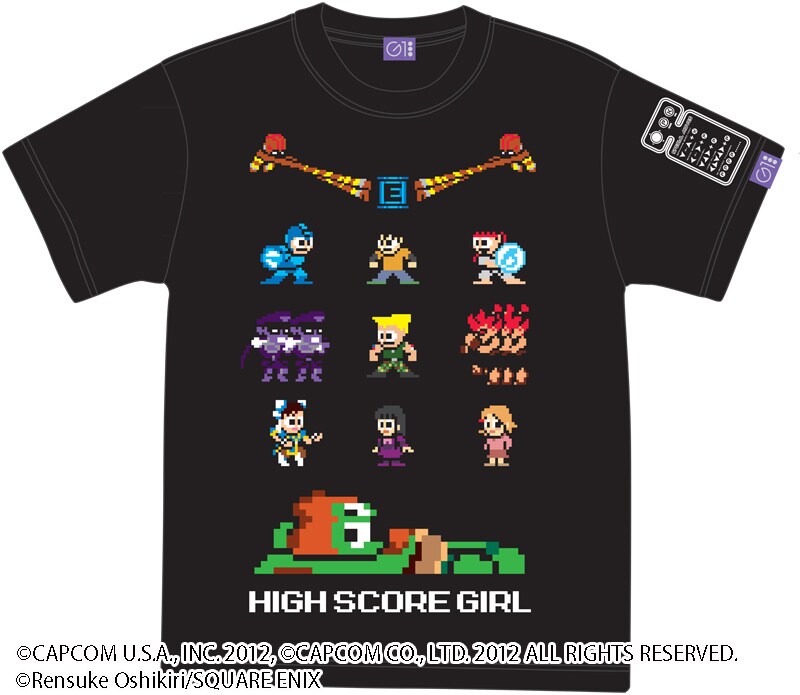 これはハルオや大野、日高といった「ハイスコアガール」の登場人物を、カプコンの名作ゲーム「ロックマン」風に描き下ろしたイラストと、ガイルやチュンリーなど「ストリートファイターII」のキャラクターのドットイラストをデザインしたTシャツ。このイラストは、月刊ビッグガンガンVol.05の表紙を飾り話題を呼んでいた。