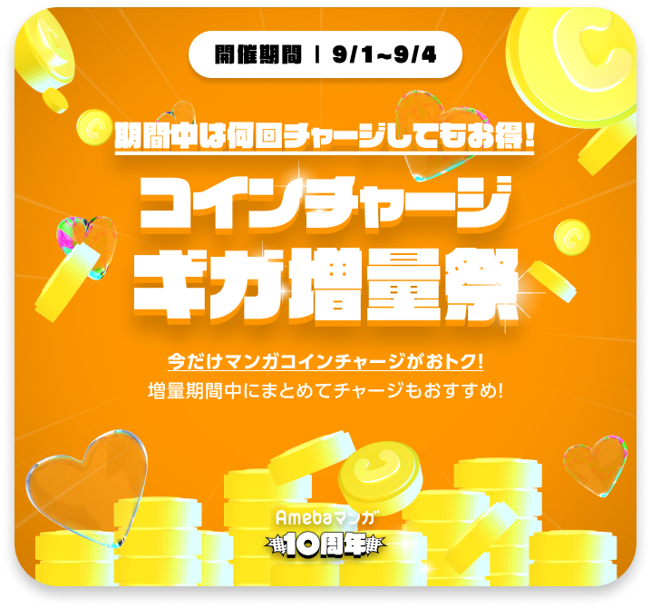 さらにAmebaマンガに友達を招待した人に1人につき1500円分、最大4500円分のコインを、招待された人には1500円分のチケットをプレゼントするキャンペーンや、9月4日までにマンガ購入用のコインをチャージするとコインが最大50%増量でもらえる施策も実施している。これまでに挙げたキャンペーンを組み合わせてお得にマンガを楽しもう!