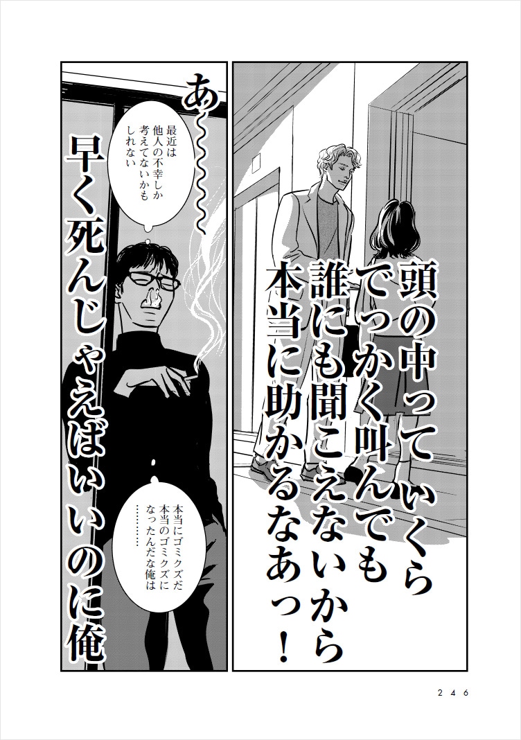 ──「羽虫のヘルツ」では「fish」よりも描線が太くなっていますし、モノローグも太字の部分があって、画面にメリハリが効いています。そうした部分でもグルーヴ感を意識されているのかなと、個人的には思っていました。