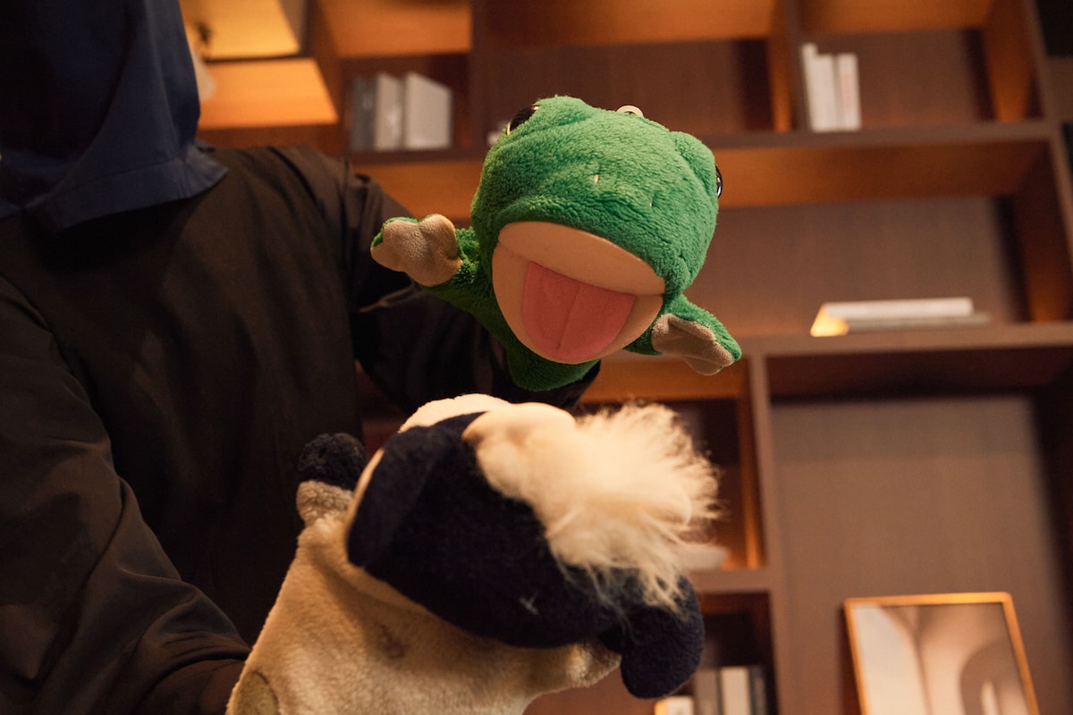 ──主人公となる謎の少女・ナマエは、真っ黒な身体に目だけ白く空いているという黒子のようなビジュアルで、パペットマペットさんは親近感が湧いたんじゃないでしょうか?(うしくんとカエルくんの後ろに視線を向けながら)