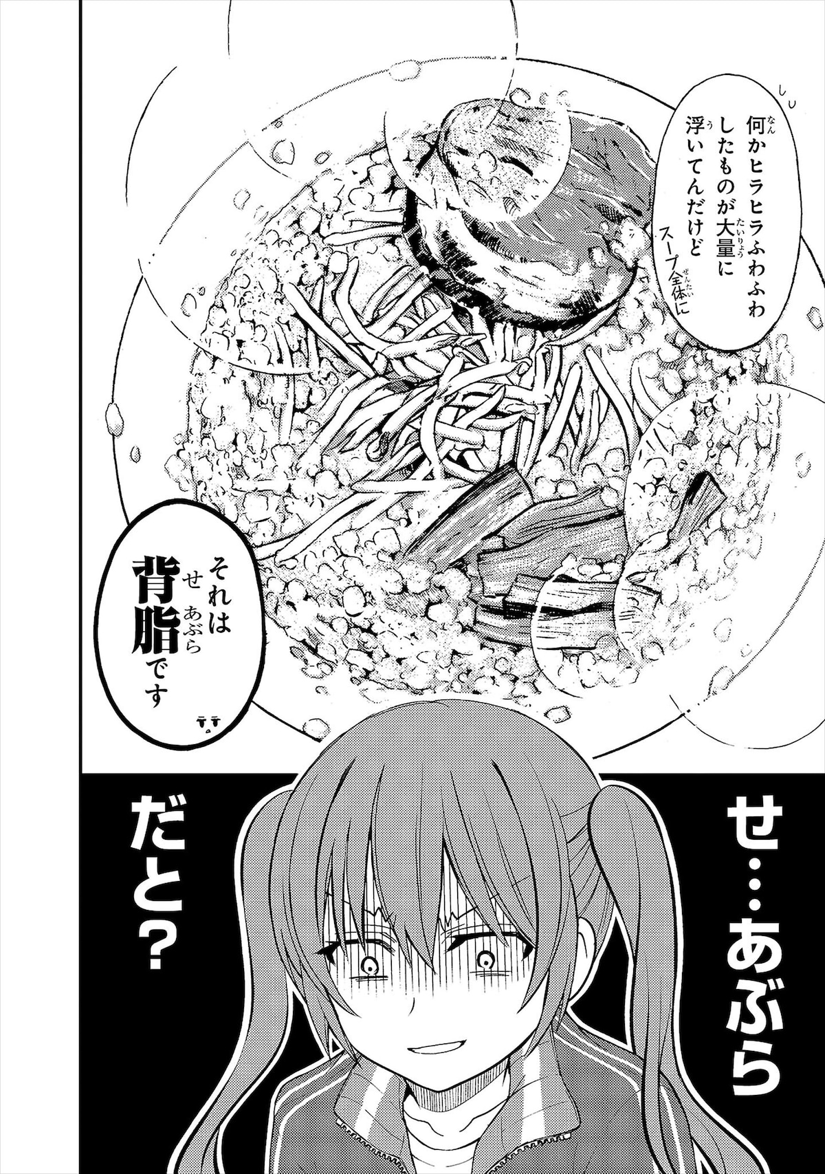 SUSURU シチュエーションがちゃんとしてますよね。毎回すべてのラーメンにストーリーがちゃんとあって、ストーリーに合ったラーメンを食べている。激辛ラーメンの回なんかうまいなって思いました。美沙ちゃんの失恋の話から「辛(から)い」と「辛(つら)い」をかけてっていう。女子高生同士だからこそのストーリーですよね。僕みたいな大人の男性だとこういう話はできない。しかも、ラーメンの説明や紹介もちゃんと入ってて、読者を置いてきぼりにしていない。ラーメン好きな人が描いてるなって思います。