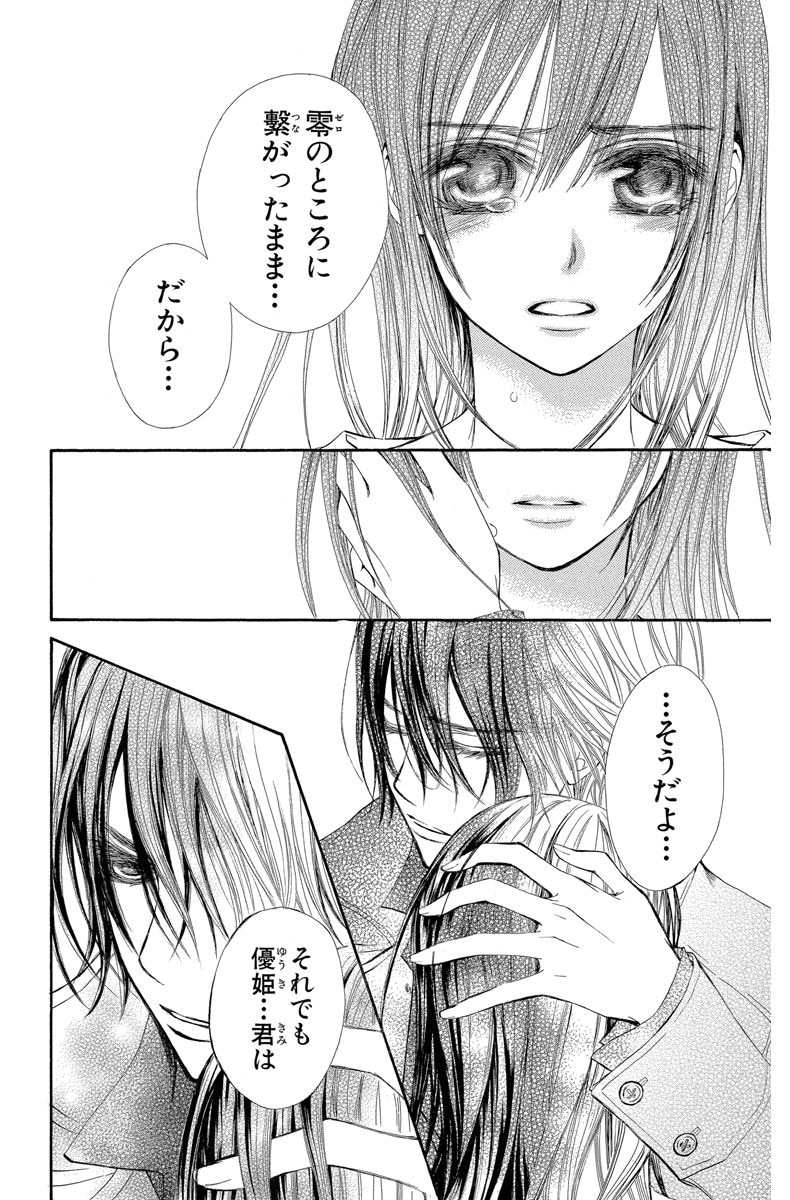 | 自分の命を使って枢を人間にすると決めた優姫。零を飢えから解放するため、自らに関する記憶をすべて奪う。 | |