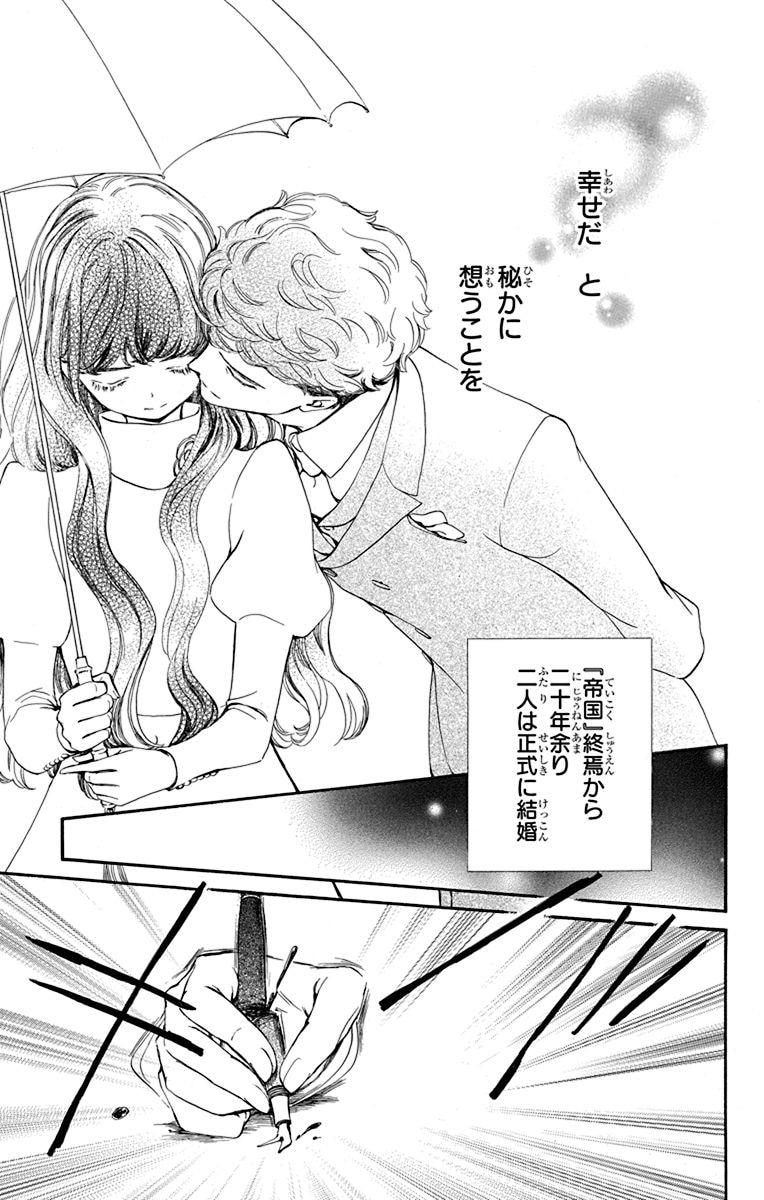 愛とタロが再会。実は帝(市長)の第3皇子だったタロは、吸血鬼と人間の和平について愛に相談をもちかける。 |
